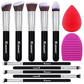BEAKEY Makeup Brushes Set, Professional Foundation Eyeshadow Concealer Blush Powder Bronzer Applicator, 2 Blender Sponge with Beauty Paper Case, Valentines Day Gifts for Her