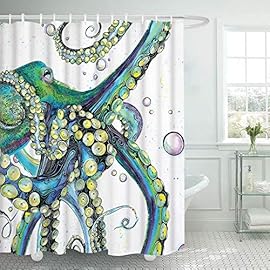 Alishomtll Bathroom Shower Curtain Colorful Fashion Octopus Shower Curtains Durable Fabric Bath Curtain Waterproof Bathroom Curtain with 12 Hooks, Colorful Fashion Octopus Shower Curtain