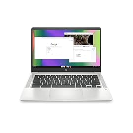 HP Chromebook 14 Laptop, Intel Celeron N4120, 4 GB RAM, 64 GB eMMC, 14″ HD Display, Chrome OS, Thin Design, 4K Graphics, Long Battery Life, Ash Gray Keyboard (14a-na0226nr, 2022, Mineral Silver)