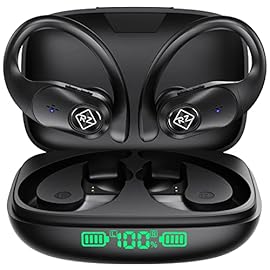 Wireless Earbuds Bluetooth Headphones Wireless Charging Case LED Display 40H Playtime Built in Mic Over Ear buds Waterproof Earphones with Earhooks Deep Bass Sound Headset for Sport Running Workout TV