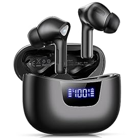 Wireless Earbuds Bluetooth V5.3 Headphones 50H Playback Deep Bass Stereo Ear Buds with LED Power Display Charging Case IPX7 Waterproof Earphones with Mic Headset for Laptop Pad Android/iOS Phones