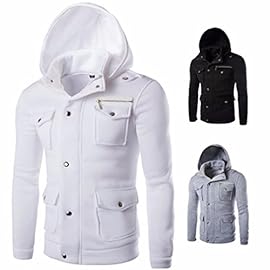 Han Shi Hoodies, Men Fashion Pocket Button Coat Jacket Sweater Swearshirt Outwear Tops