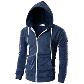 OHOO Mens Slim Fit Long Sleeve Lightweight Zip-up Hoodie with Kanga Pocket