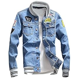 LifeHe Men Denim Jacket with Patches Light Blue 3XL