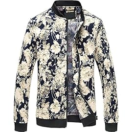HENGAO Men’s Stylish Flowers Print Zipper Front Bomber Jacket