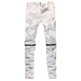 NITAGUT Men’s Ripped Slim Straight fit Biker Jeans with Zipper Deco