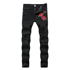 Leward Men’s Ripped Skinny Distressed Destroyed Straight Fit Zipper Jeans with Holes