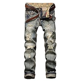 FEESON Men’s Straight Leg Slimming Fit Distressed Loose Denim Jeans