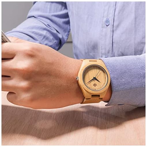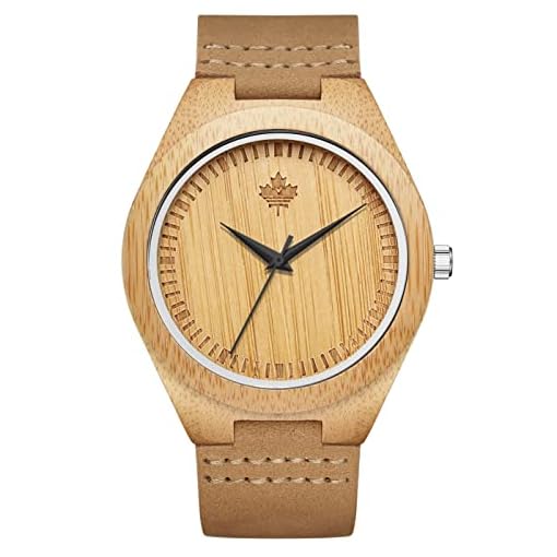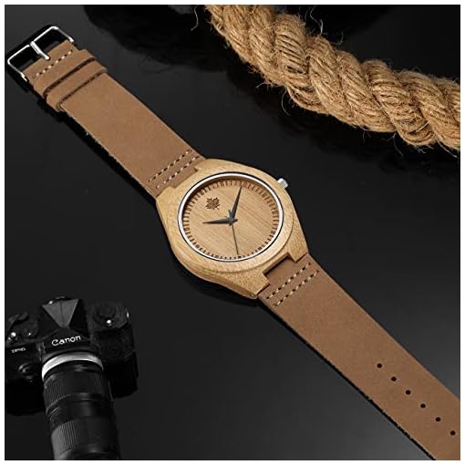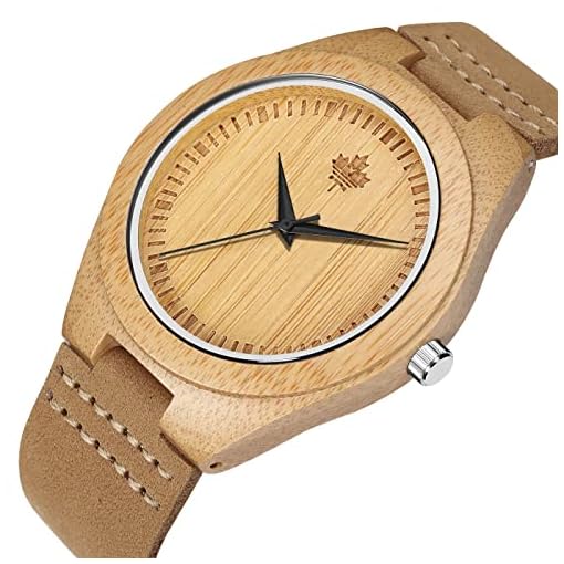 Tamlee Bamboo Wooden Mens Watch with Cow Leather Strap Quartz Analog Fashion Casual Unisex Wood Engraved Lightweight Wristwatch