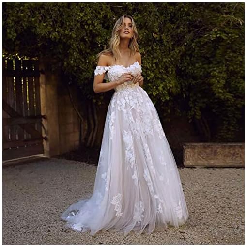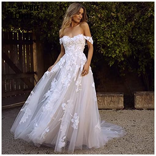 XYAYE Summer Beach A Line Wedding Dresses for Bride 2021 with Sleeves Off Shoulder Bridal Gown with Applique XY025